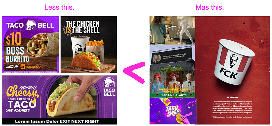 After winning the Taco Bell business in January of 2021, it was time to get to work. It didn't take us long to find the issue. For a brand known for its 'cultural cool' and cult following in the USA, the brand in Australia had no personality. It was playing it safe in every aspect of its marketing. For a brand with small budgets, playing it safe is the highest risk strategy you could take. With a tag line of Live Mas (live large), the marketing was living small. It was time to turn up the dial from boring retail to breakthrough retail.