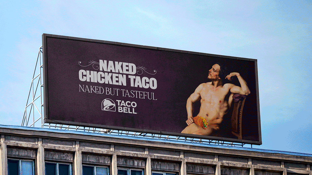 Next up was the Naked Chicken Taco. A unique product where the taco shell was made out of chicken. If we couldn't make a splash with this product, we were never going to make it happen. Once again, we demonstrated that with little time and even less money, creativity could still reign supreme. And how could we feature this masterpiece making $5 look like $5 million? We'll use the greatest masterpieces of all time, of course. After all, they were out of license.